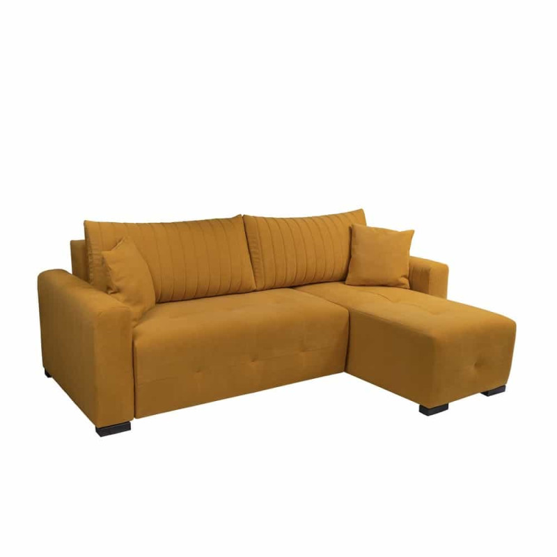 Аголната гарнитура овозможува комплетно опремување на дневната соба во естетски и функционален поглед благодарение на можноста за претворање во лежај, дополнителна удобност и дава жичаното јадро, а кутијата за складирање на постелнина ја зголемува практичноста на овој модел.Моделот поседува можност за избор на аголот како и избор на боја и материјал според штоф карта. Монтажа на тапациран мебел се наплаќа фиксно 1.200ден.