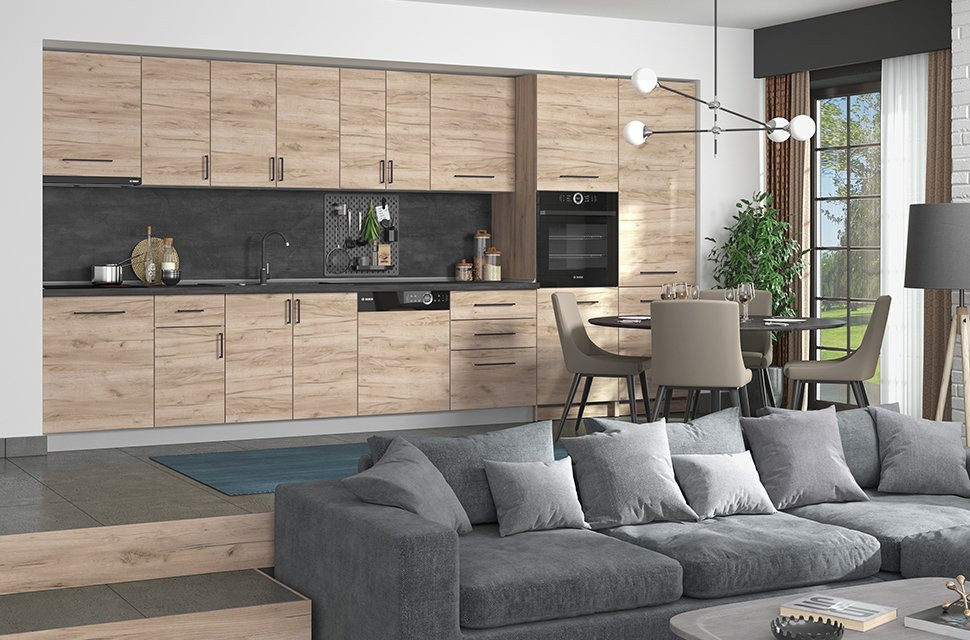 Спалната соба MODENA е комбинација од функционален и модерно дизајниран мебел кој ќе придонесе за естетиката и функционалноста на спалната средина. Сите елементи на колекцијата се изработени во комбинација од артисан храст декор, артисан храст фолија и кашмир декор и се вистинско дизајнерско освежување.