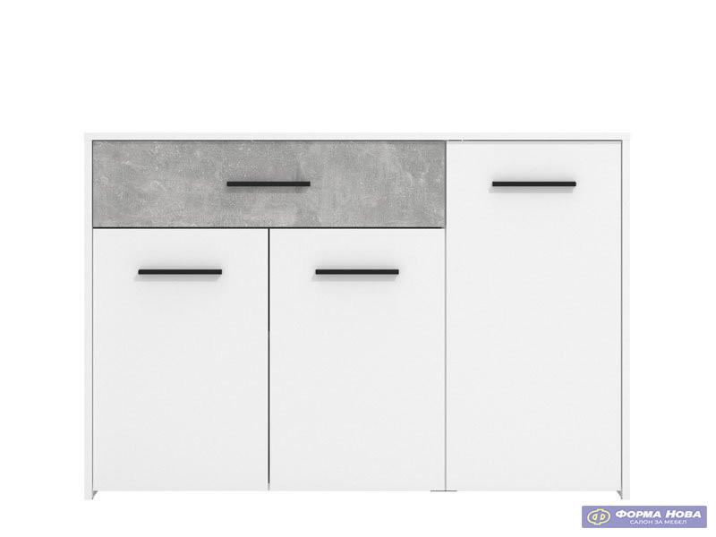 Комодата VARADERO 3K1F, во бел и бетонски декор, е дел од истоимената колекција на елементи од детската соба. Тој е идеален додаток кој благодарение на комбинацијата на функционална фиока и затворени сегменти со полица во централниот дел.Монтажа на плочест мебел се наплаќа 10% од вредноста на производот.