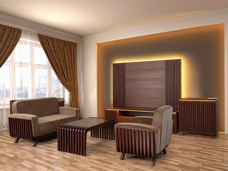 Двокрилната комода РОДОС е изработена од комбинација од цврста бука и фурниран медијапан. Во цената е вклучена расветата. Монтажа на плочест мебел се наплаќа 10% од вредноста на производот.