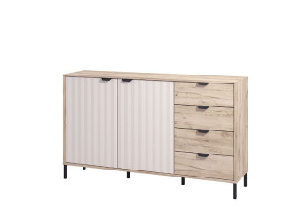 Комодата VANDEA 3K4F е функционален додаток за опремување на дневната соба. Комбинацијата на сив декор и кашмирска фолија внесува свежина на боите во амбиентот. Тој е дел од истоимениот систем на елементи за украсување на дневната средина. Монтажа на плочест мебел се наплаќа 10% од вредноста на производот.