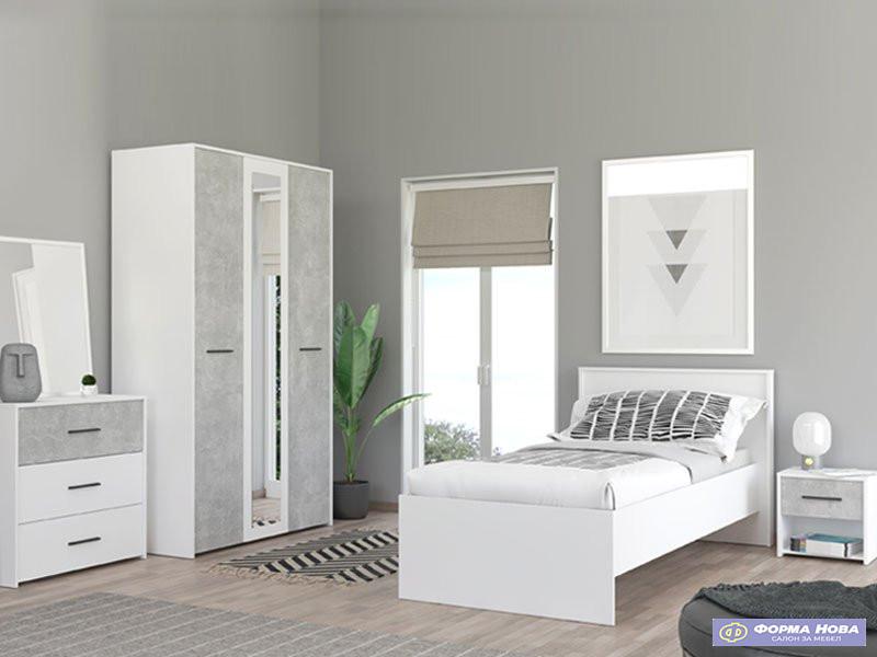 Ноќното ормарче VARADERO 2NO1F, во декор од бетон боја и опак бела боја, е дел од истоимената колекција на елементи за детска соба. Тој е идеален додаток на креветот и придонесува за практично украсување на спалната соба.Монтажа на плочест мебел се наплаќа 10% од вредноста на производот.