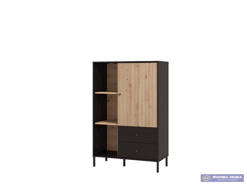 Витрината CORREZE 2K2F POP е функционален додаток за опремување на дневната соба. Комбинацијата на артисан храст декор, црн декор со текстура, како и декор со пруги, прави комбинација која ги следи дизајнерските трендови и ќе ја направи секоја околина олицетворение на модерен стил. Монтажа на плочест мебел се наплаќа 10% од вредноста на производот.