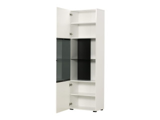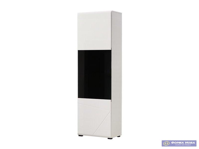 Витрина ТРЕНТИНО 1К ВС, во комбинација опак бела и црно дрво и фронтови во бел сјаен медијапан, дел е од системот на елементи ТРЕНТИНО чиј дизајн и функционалност допринесува практични и естетски автентични решенија за опремање на ентериерот. Поседува затворени делови со soft-close механизам. Хоризонтални прегради од темно парсон стакло. Поседува можност за додавање лед расвета, препорачуваме РА-13. Монтажа на плочест мебел се наплаќа 10% од вредноста на производот.